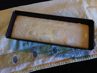 Gestern vorbereiteten Brotteig aus dem Kühlschrank geholt, gebacken